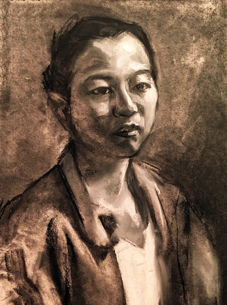 Charcoal and white conte on paper, 2018.